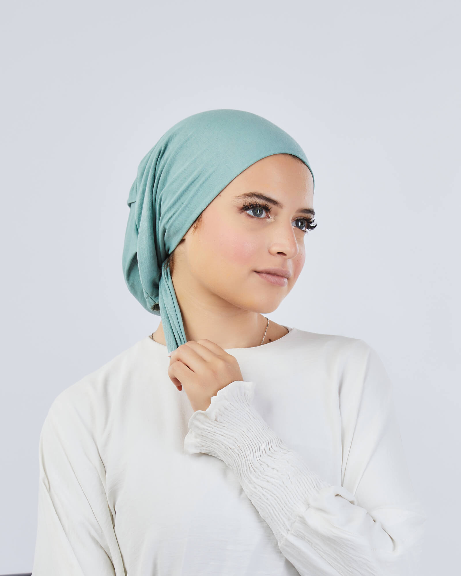 The No Thread Bonnet with Ribbon is a very soft and comfortable layer under your scarf, it covers your hair completely and you feel like you are wearing nothing! It comes with a ribbon so you can control its size.