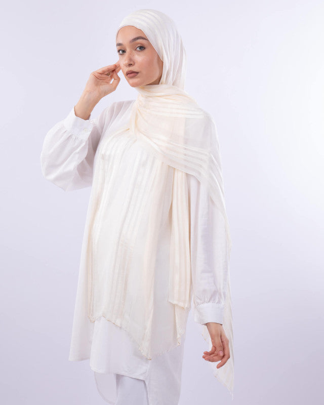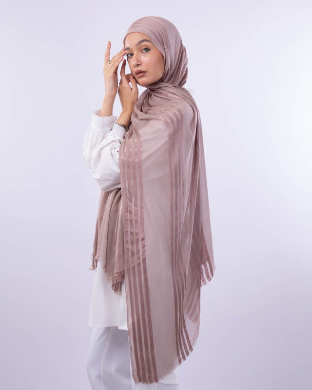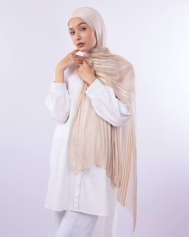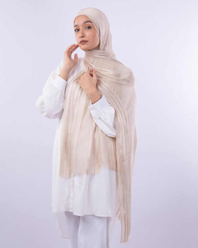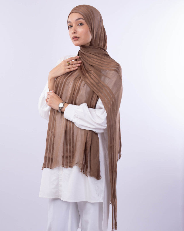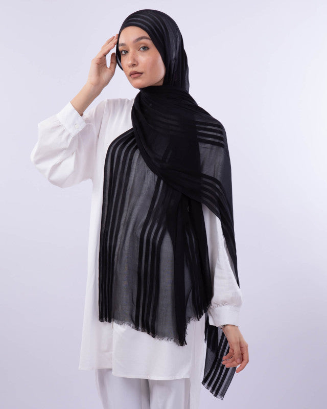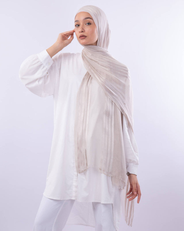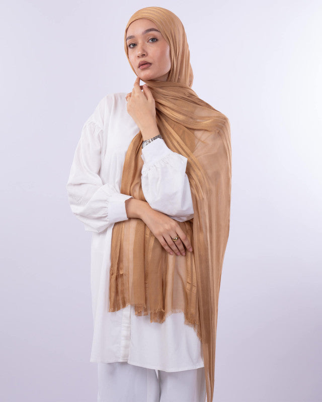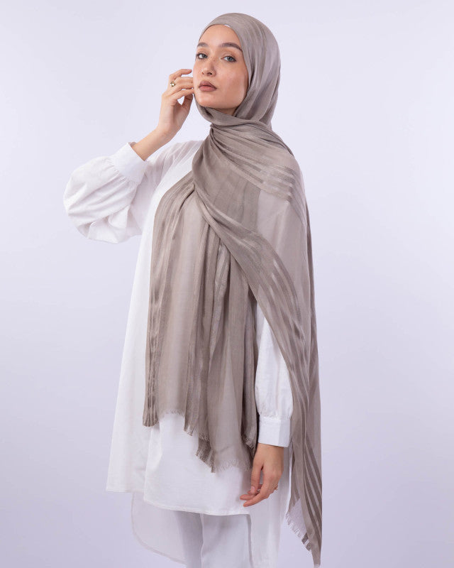 Our Satin Striped Kuwaiti Scarf is the scarf you need not only for casual outings, but also for night ones and events. It’s very fluffy, elegant, and can be wrapped in many ways.