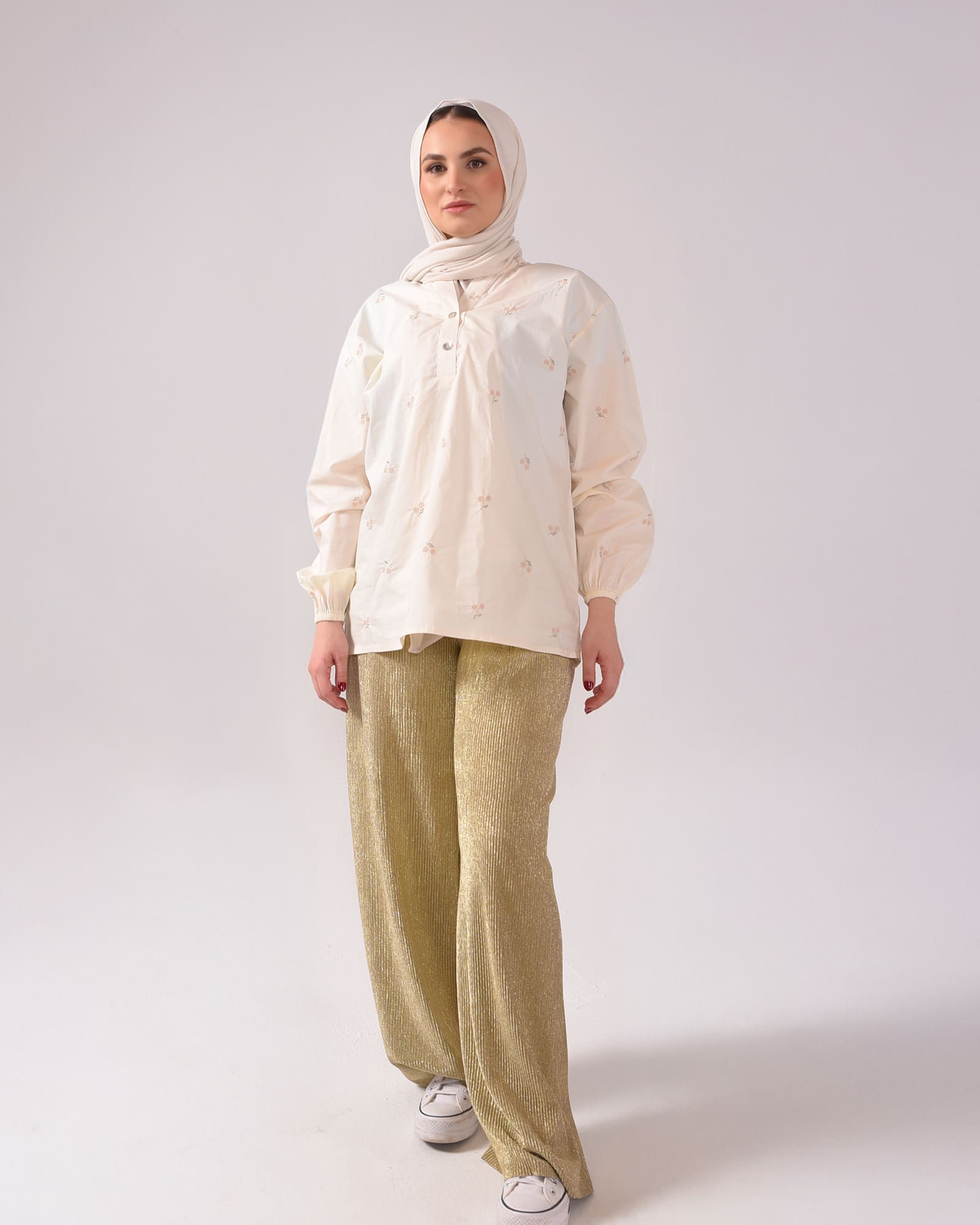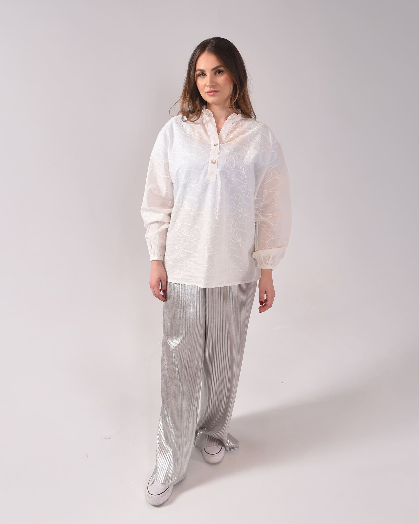 The Bloomy Blouse captures feminine elegance, perfect for summer days. Made from soft, lightweight cotton, it offers a stylish and refined look that keeps you cool and chic. With its delicate design and sophisticated style, Bloomy adds a fresh and timeless charm to your warm-weather wardrobe.
