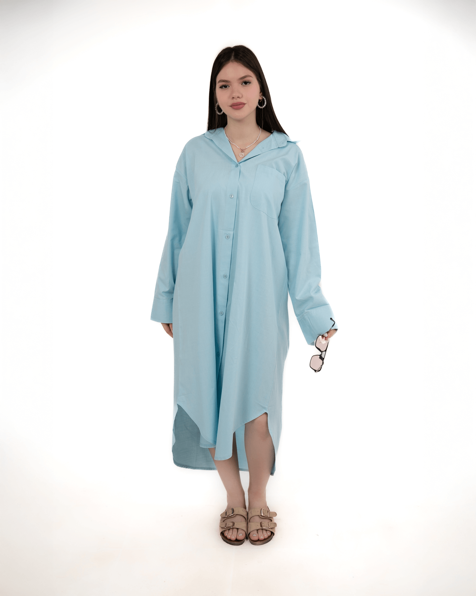 Inspired by the classic shirt silhouette, this dress features clean lines and a relaxed fit, making it ideal for warm-weather days and casual outings.