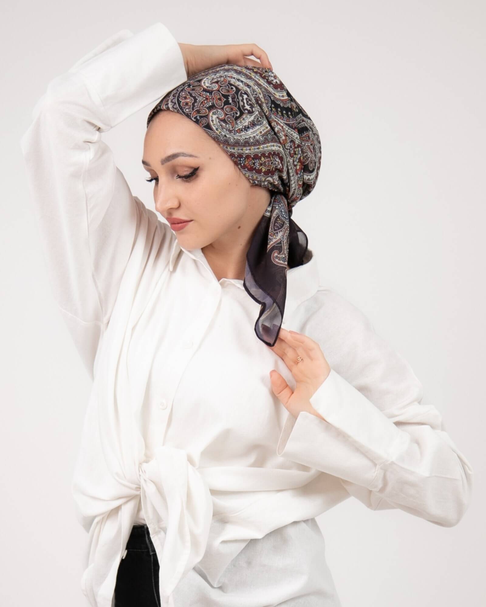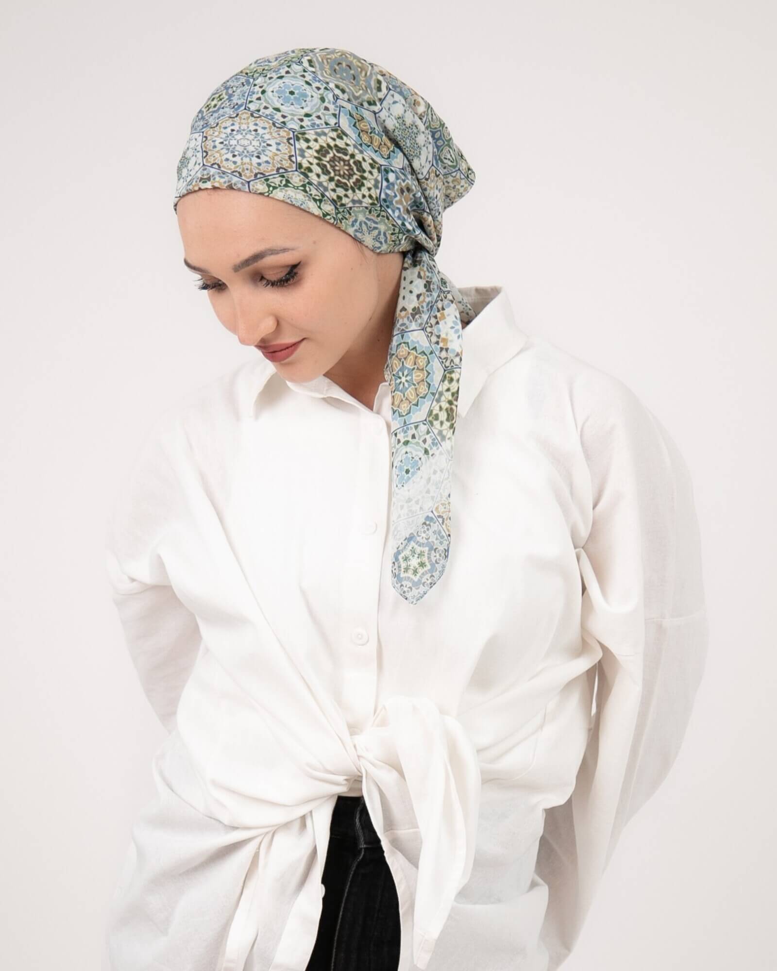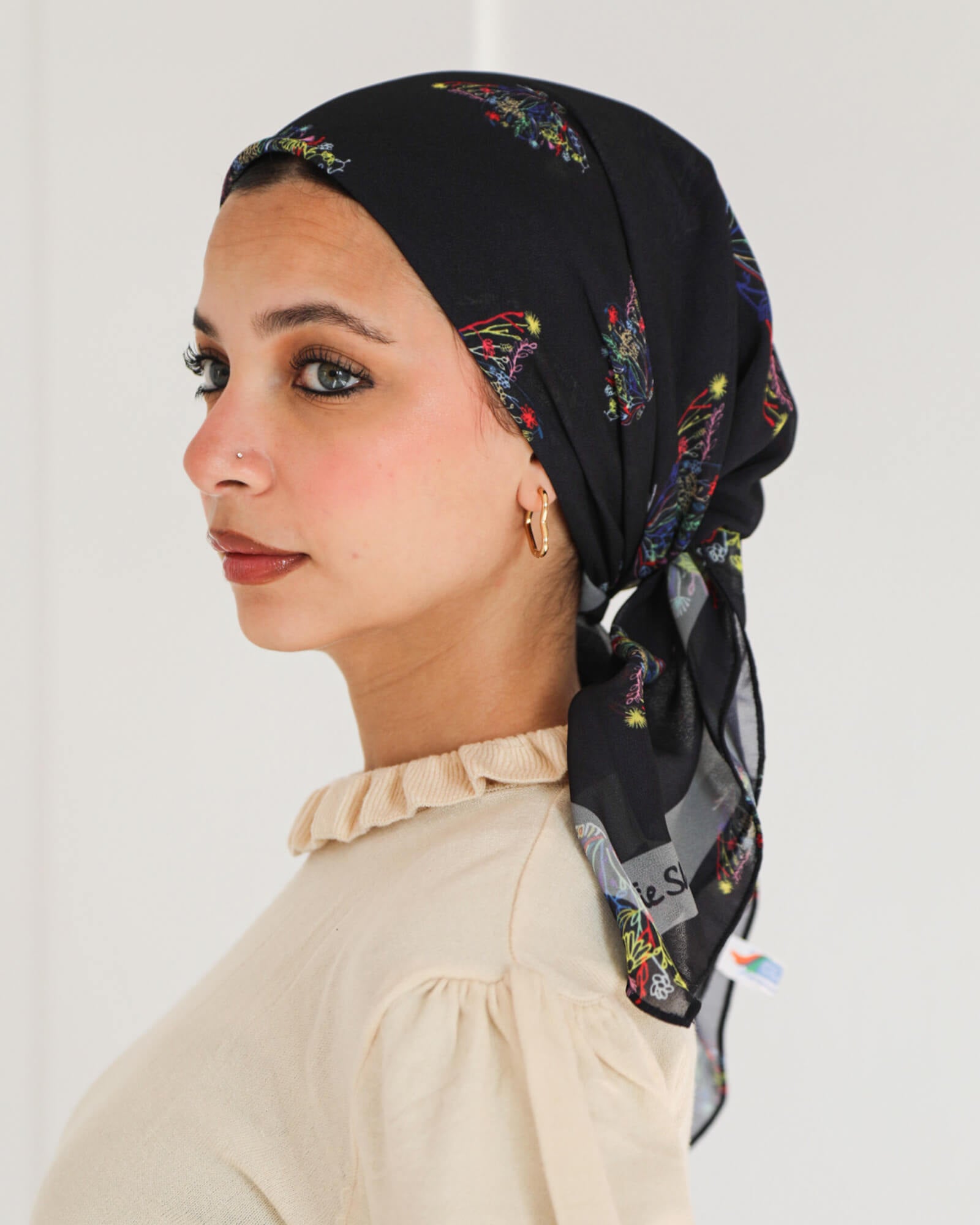 For a quick hijab style change, try our Square Printed Crepe Chiffon. Its designs and colors are very vibrant and the fabric is so soft.