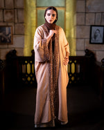 our “Bareeq” kaftan is designed to add elegance and charm to your Ramadan looks. Adorned with sequins and lace border on the chest and sleeves, “Bareeq” is the piece you need for all Ramadan’s nights this year.