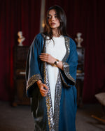 our “Bareeq” kaftan is designed to add elegance and charm to your Ramadan looks. Adorned with sequins and lace border on the chest and sleeves, “Bareeq” is the piece you need for all Ramadan’s nights this year.