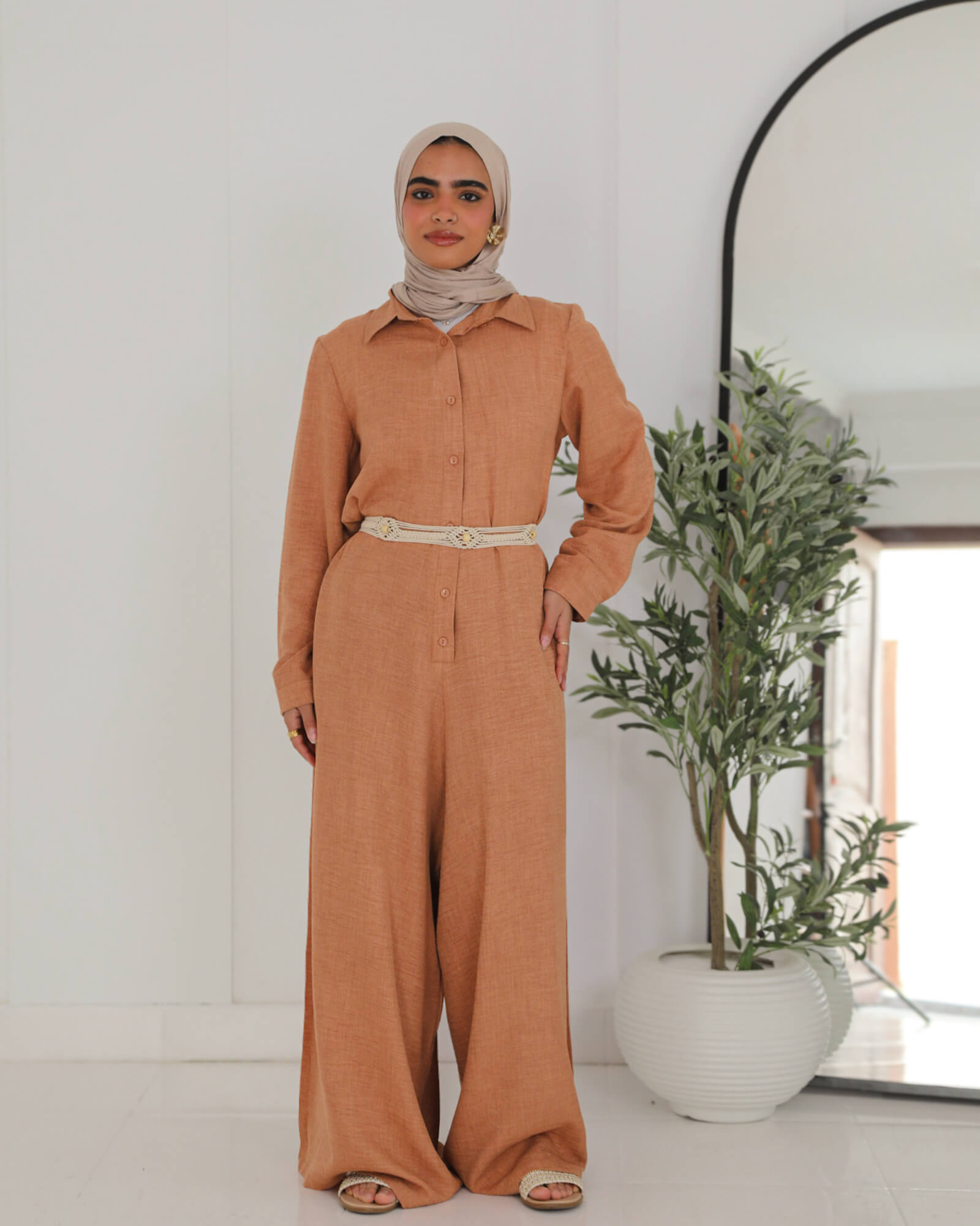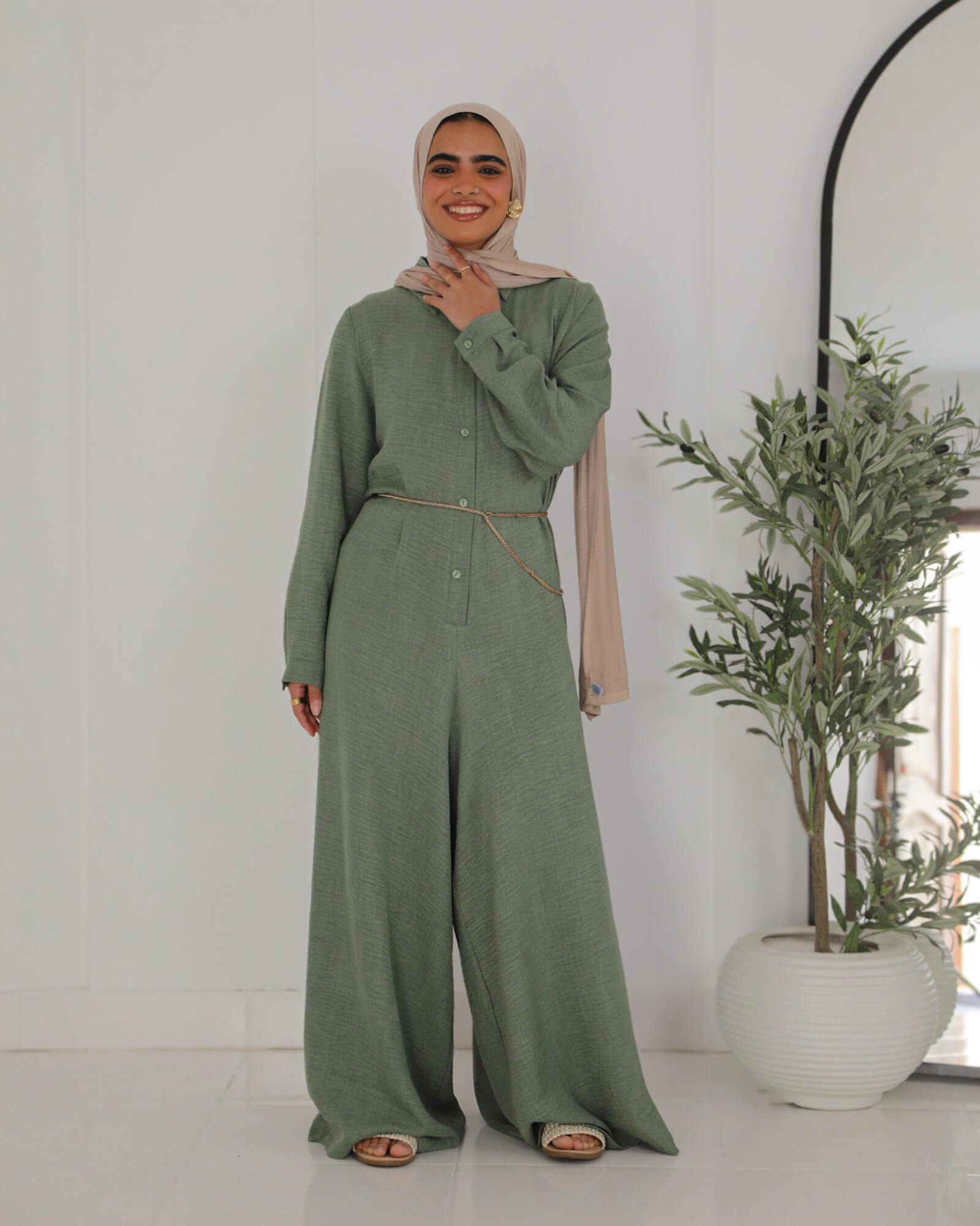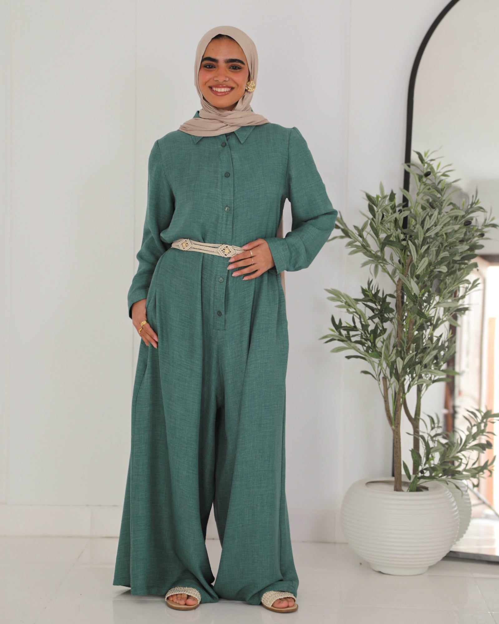 With a button-up front, side pockets, and wide-leg trousers, our Comfy Linen Jumpsuit offers you both fashion and functionality in one piece. Elevate your modest style with this practical jumpsuit.