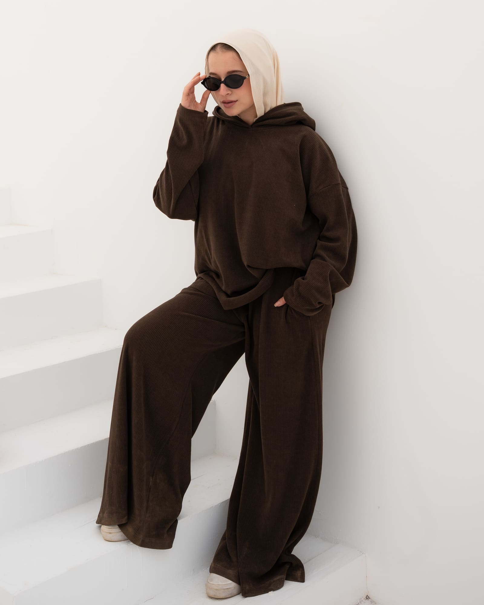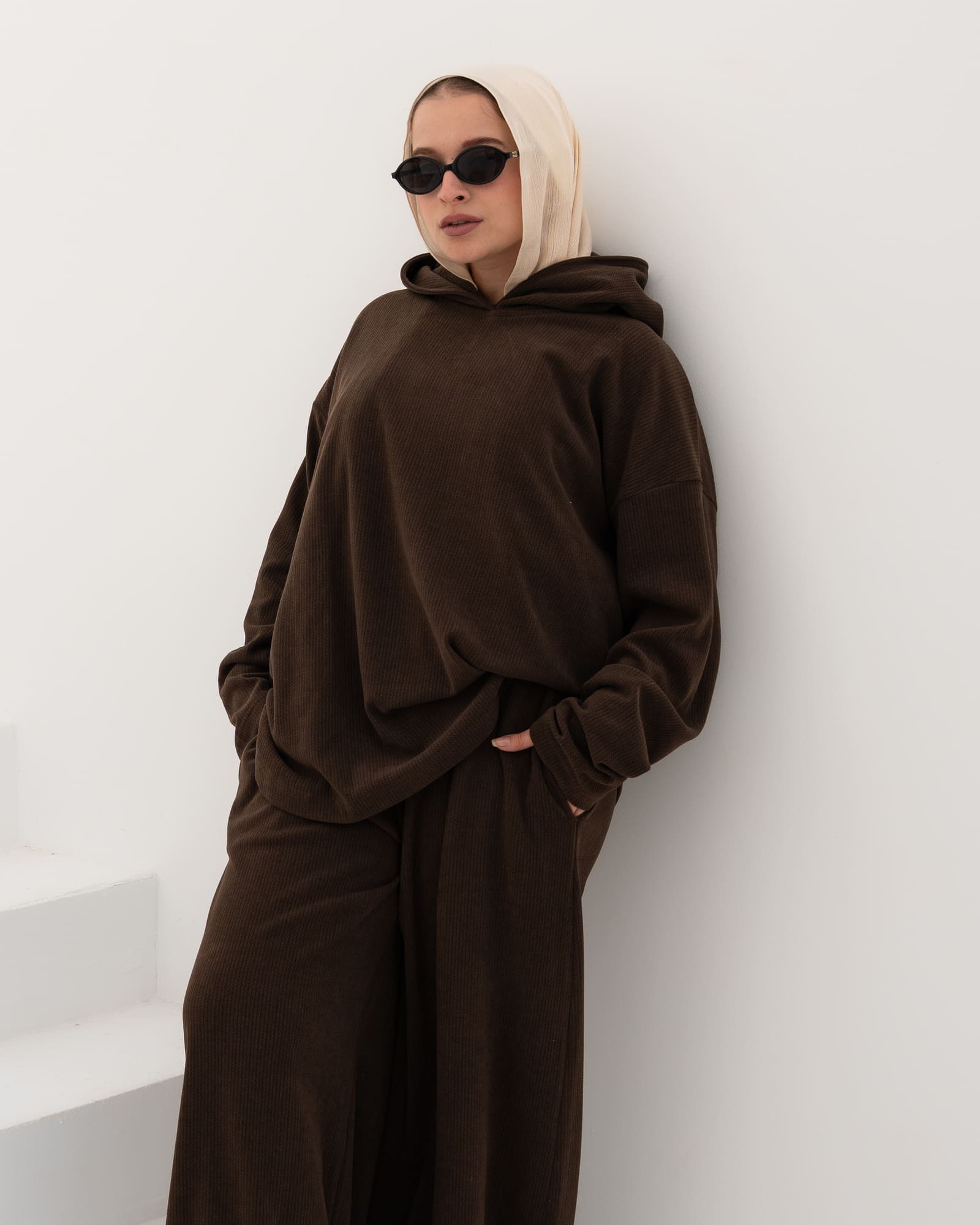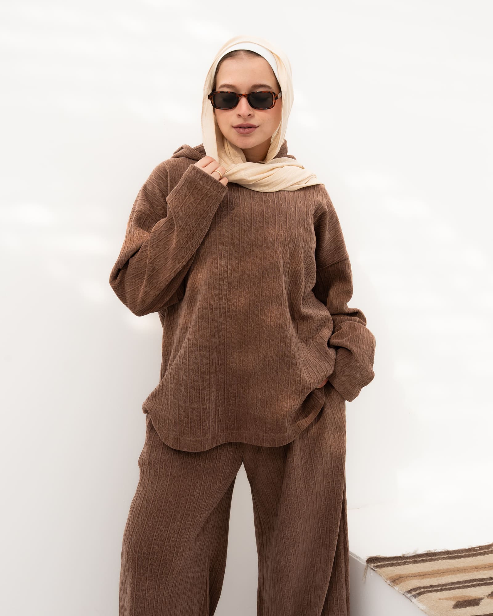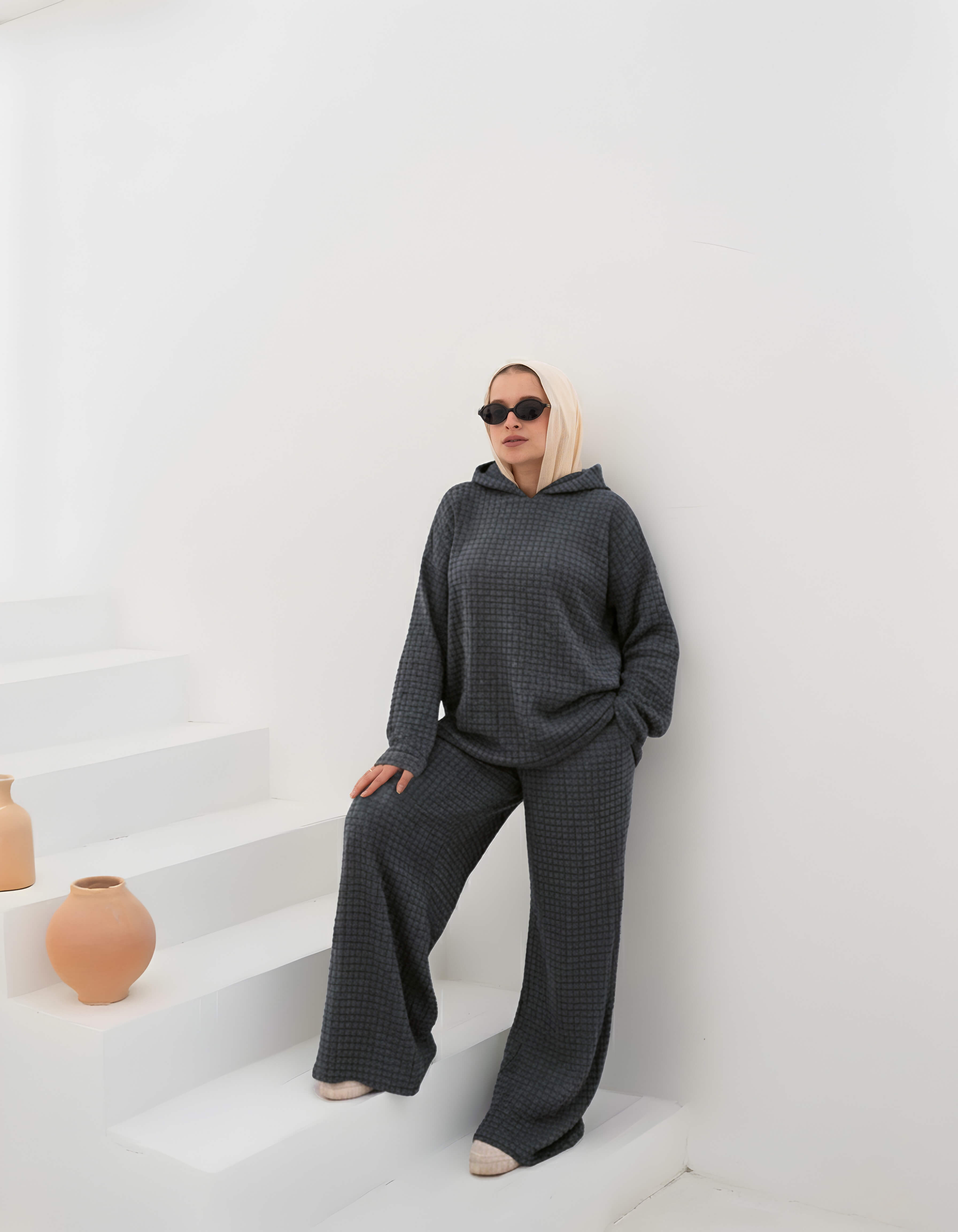 Soft and comfy, this waffle fabric set gives a playful, feminine vibe. Its relaxed fit makes it perfect for everyday wear, whether worn together or mixed with other pieces. Warm, practical, and effortlessly stylish.