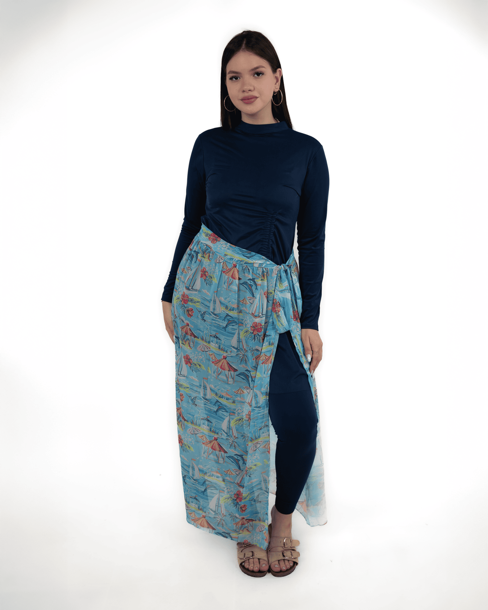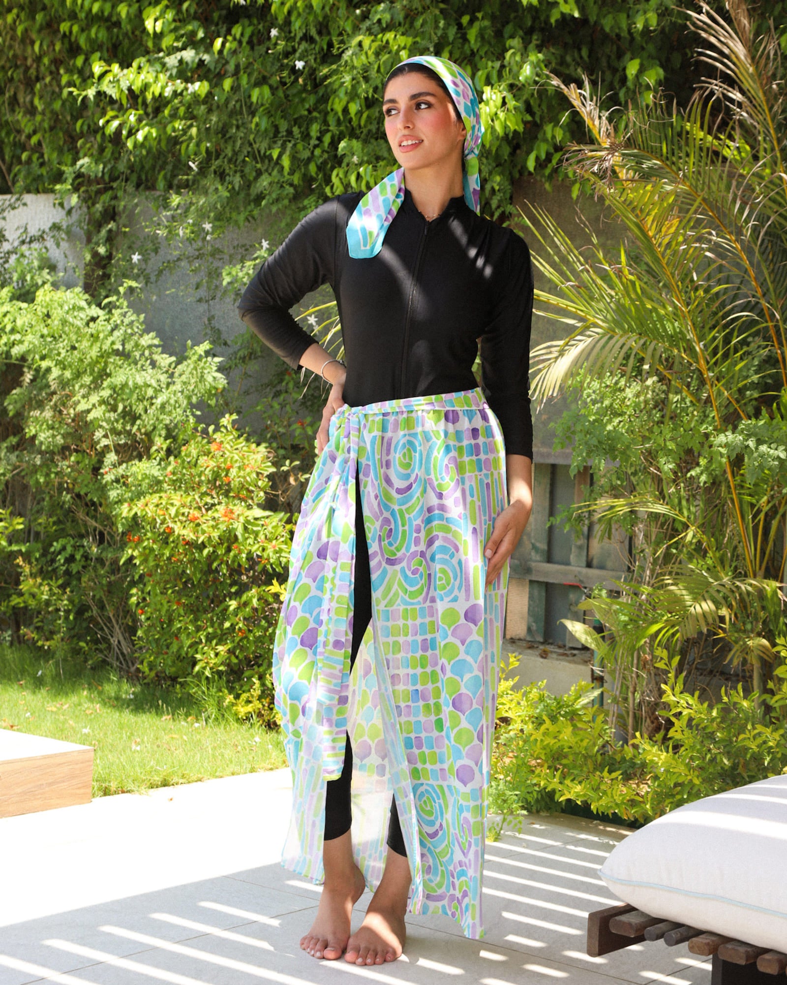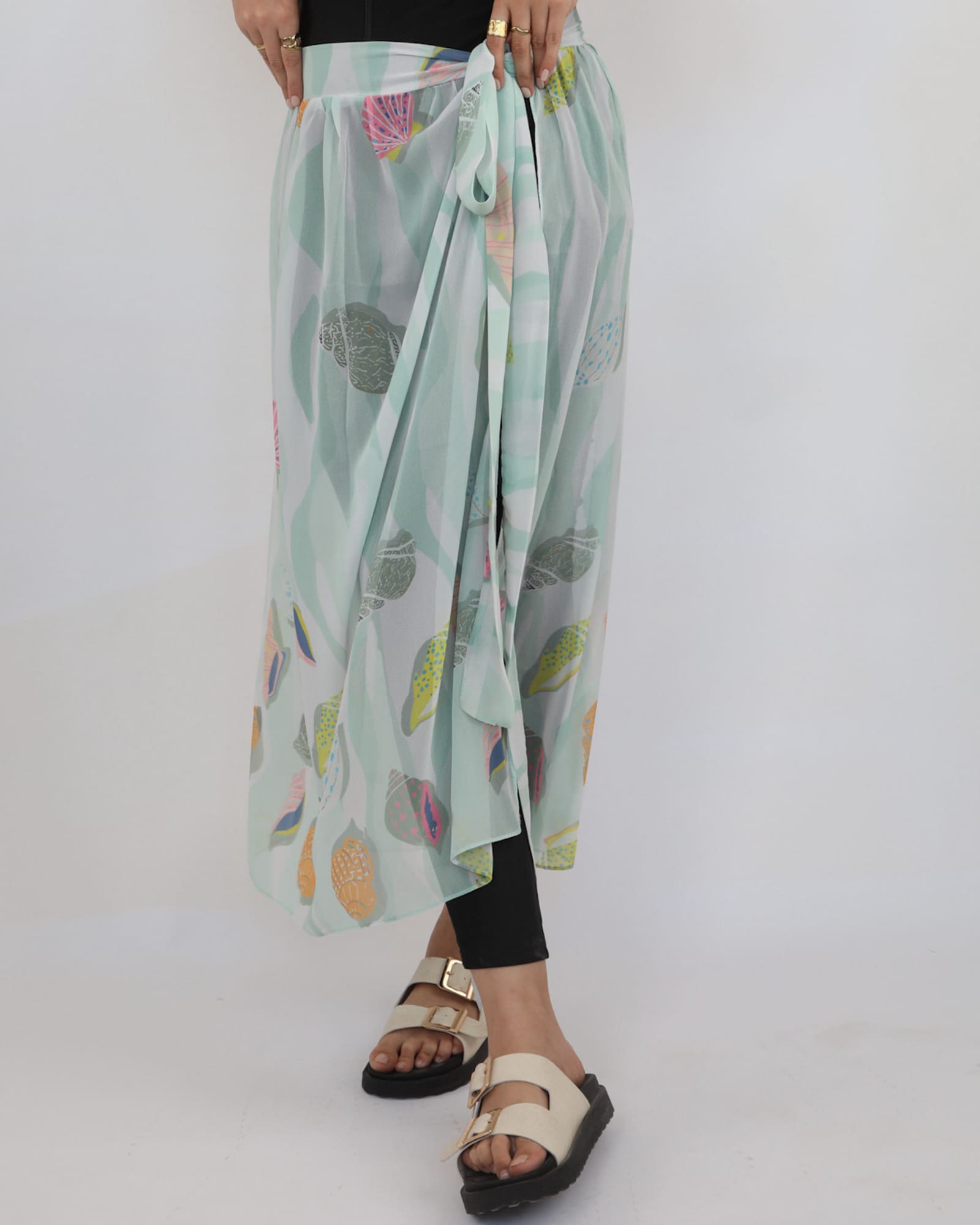 Add summer vibes to your swimsuit with our Printed Cover-Up. It’s a wrap cover-up skirt made of chiffon fabric with trendy and cool patterns.