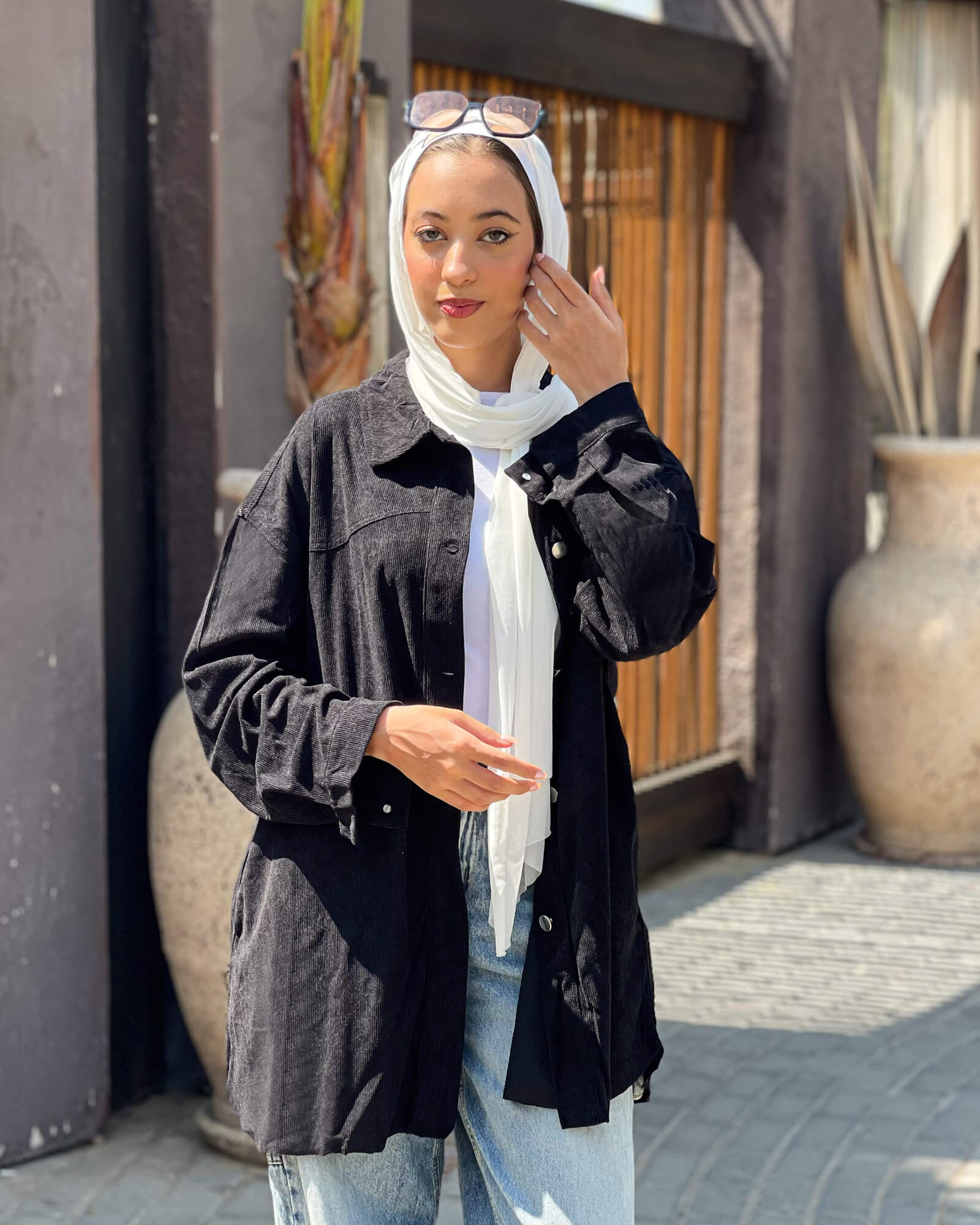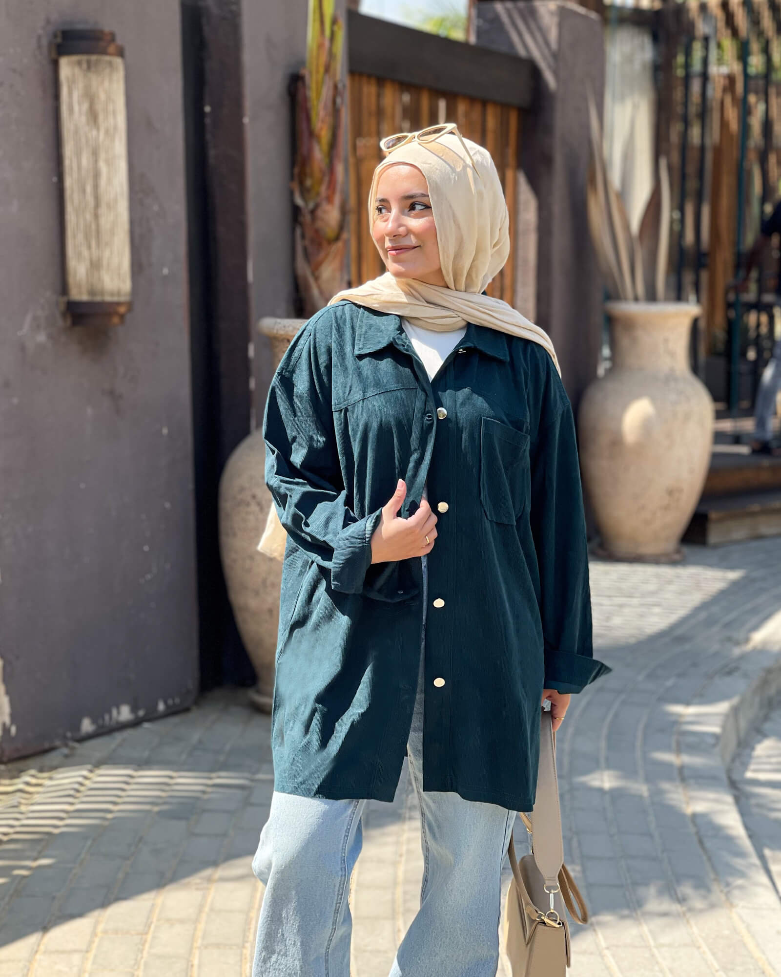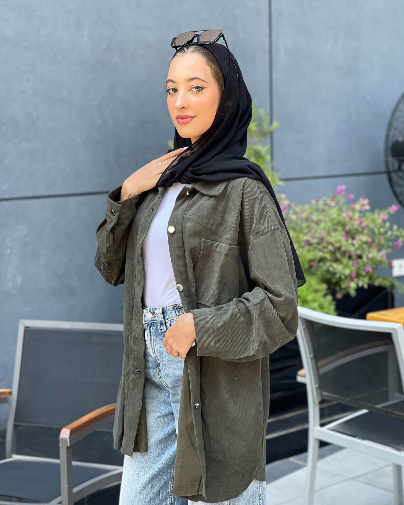 Going out every day with a different outfit is a hassle! But don’t worry, our Ribbed Velvet Shirt will do the job! It’s a practical, cozy, velvet chemise, with an oversize style and ribbed texture.