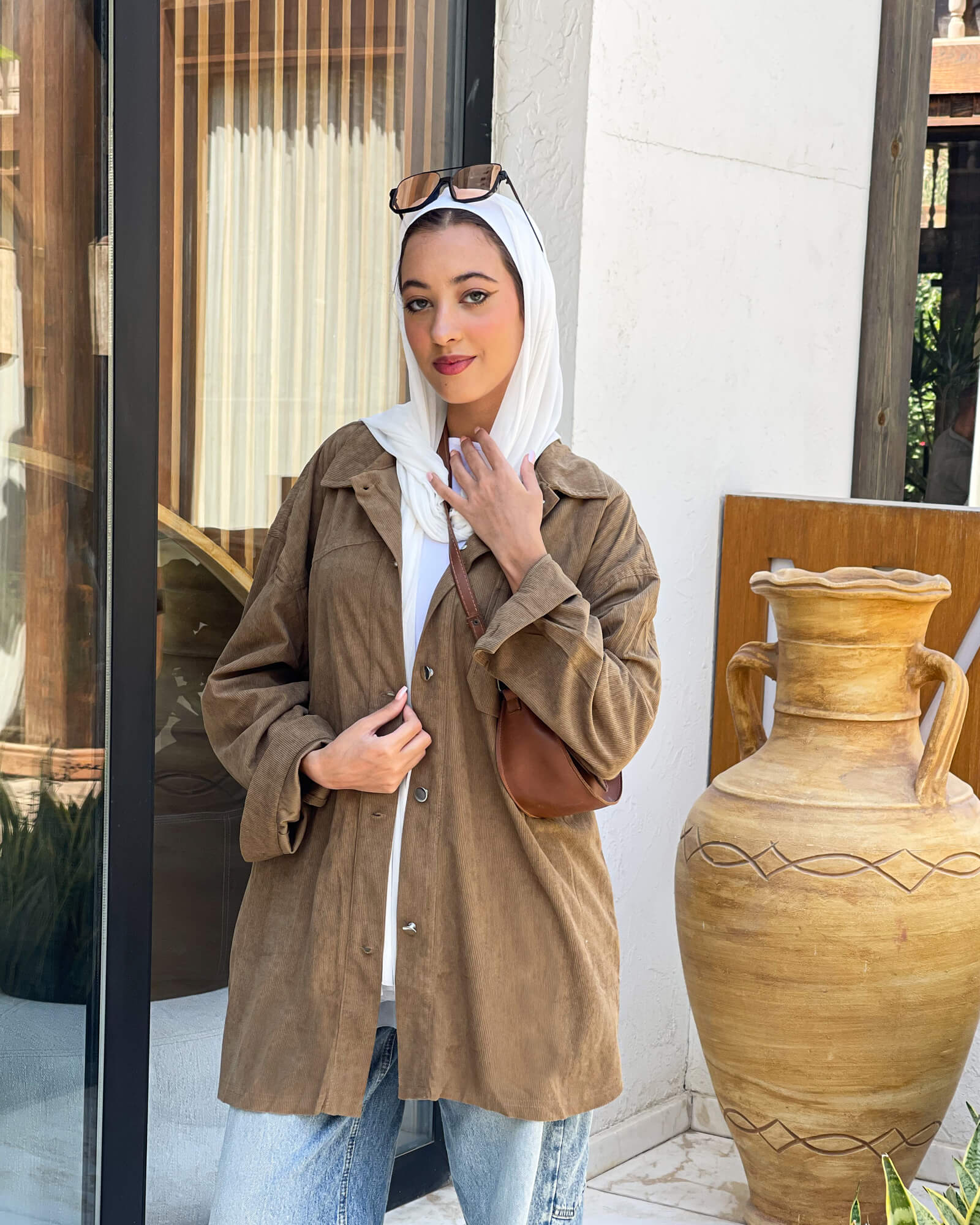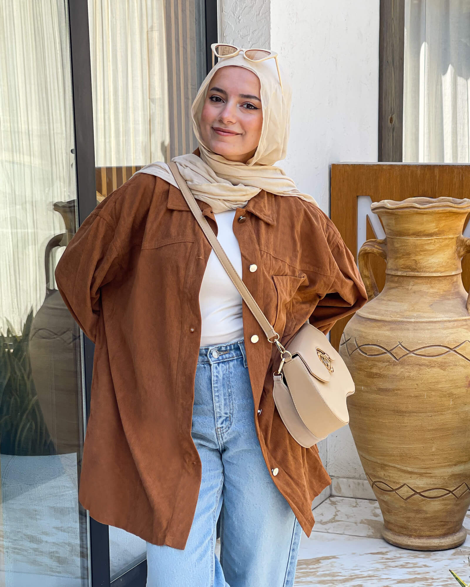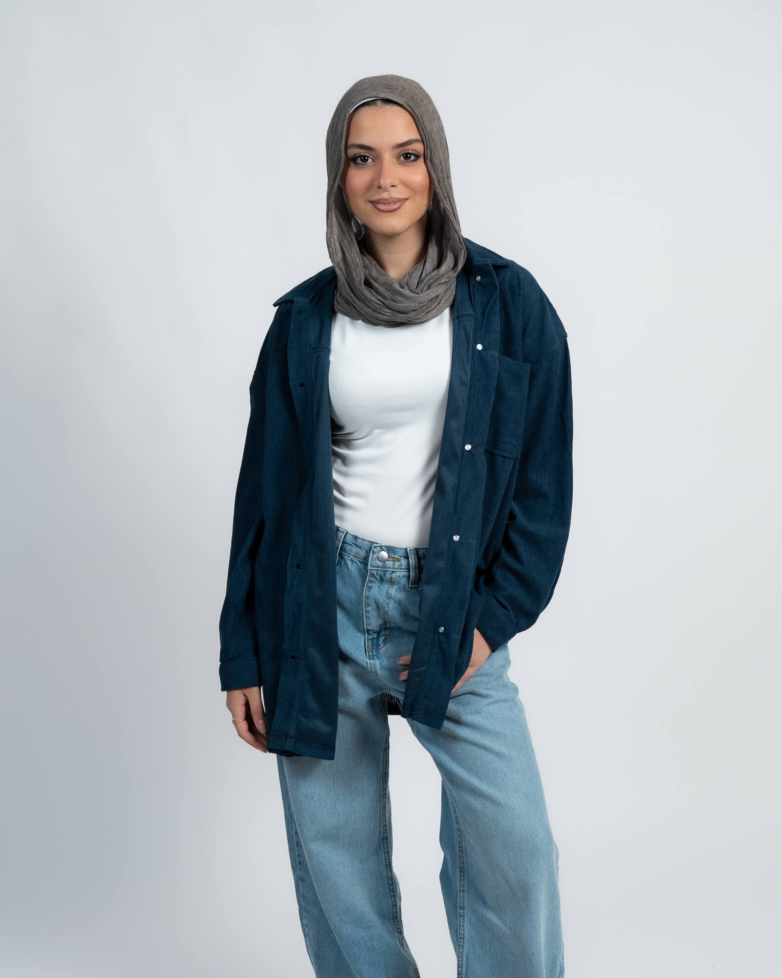 Going out every day with a different outfit is a hassle! But don’t worry, our Ribbed Velvet Shirt will do the job! It’s a practical, cozy, velvet chemise, with an oversize style and ribbed texture.